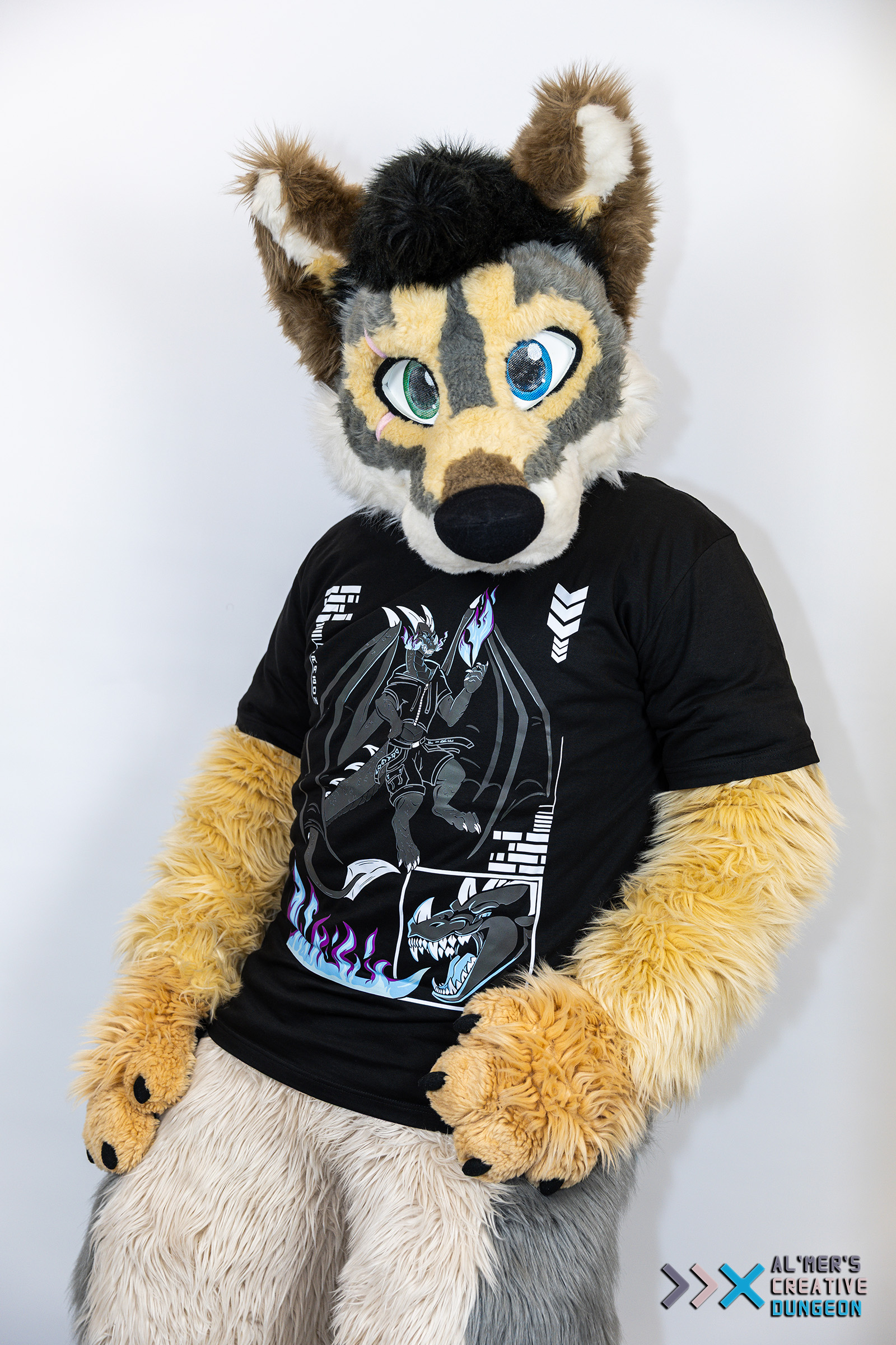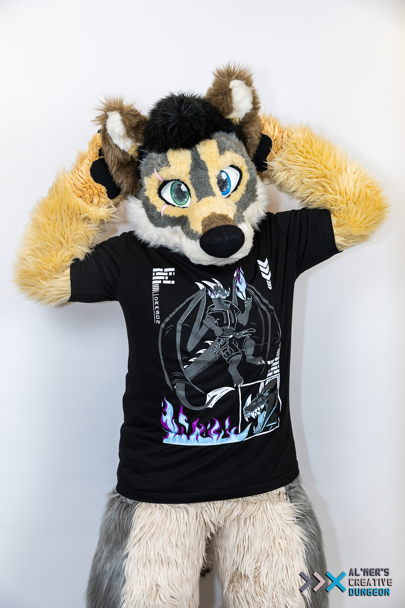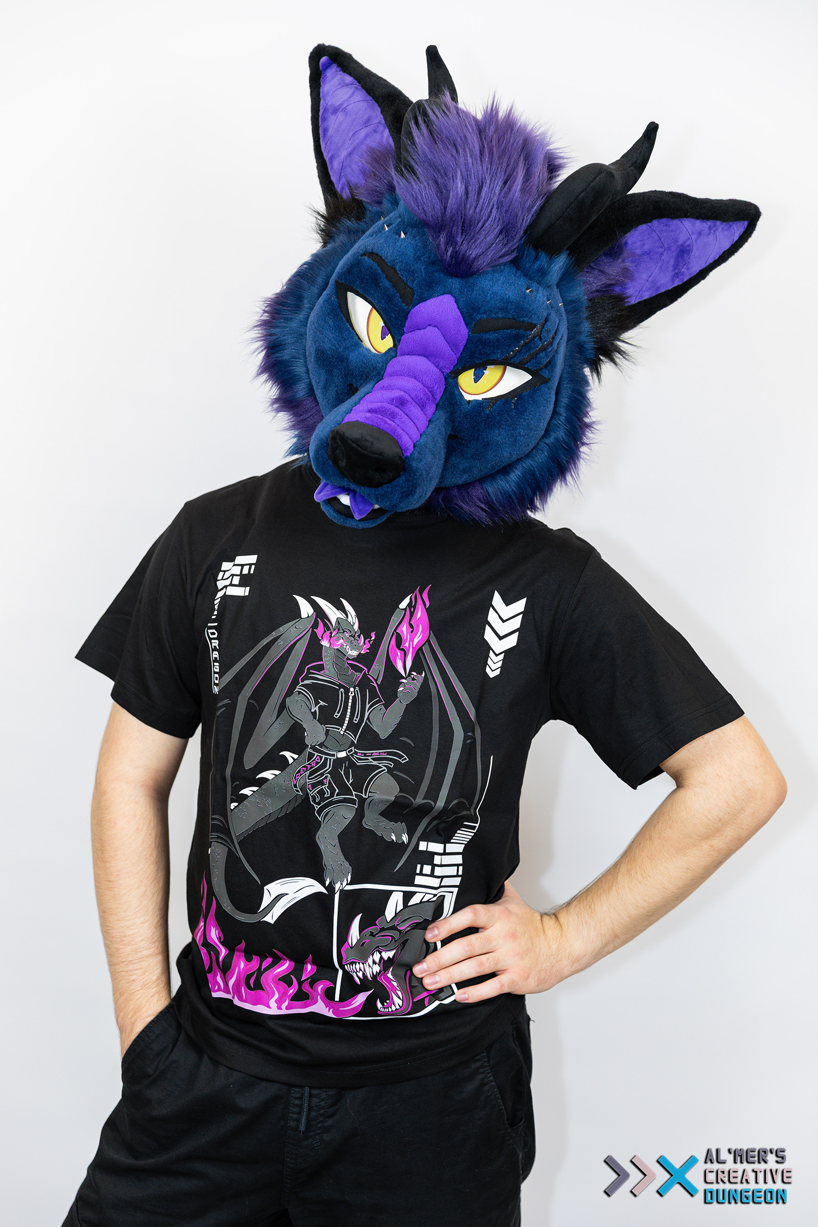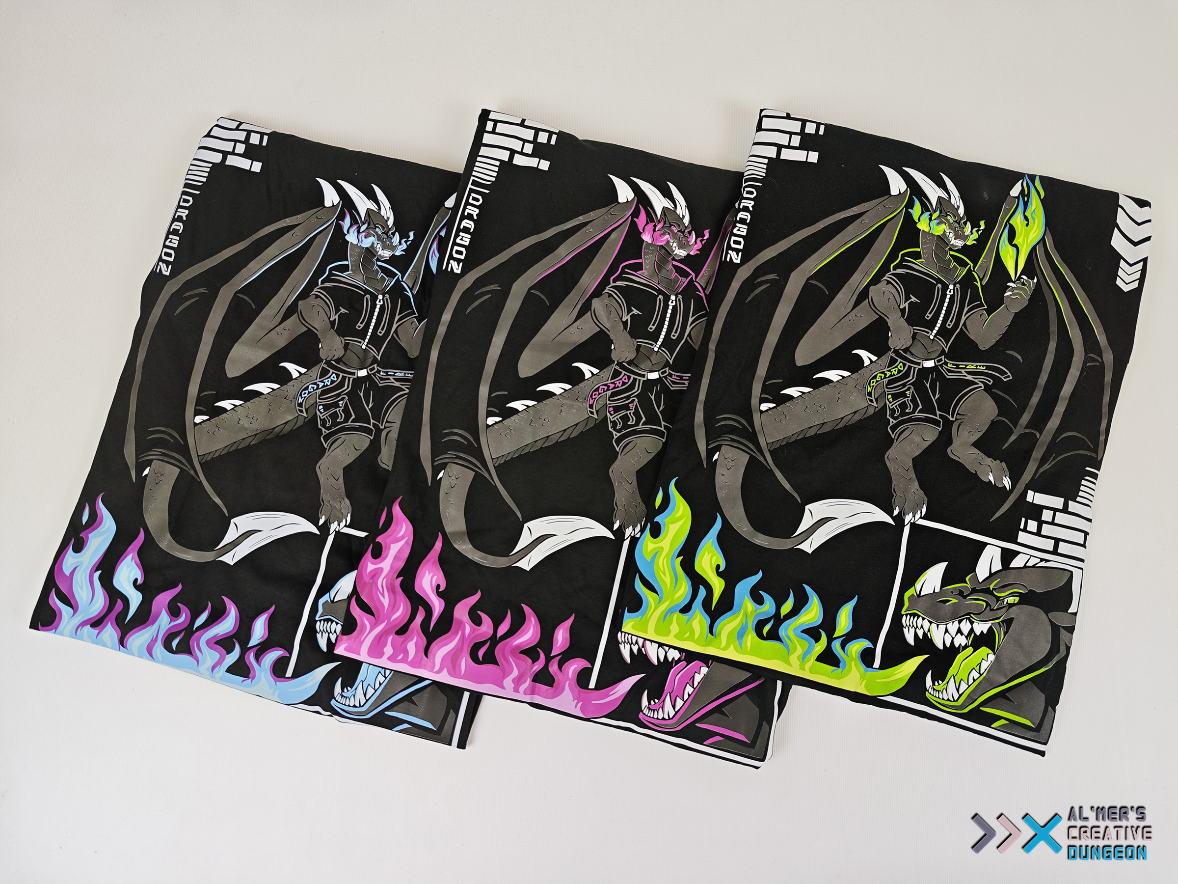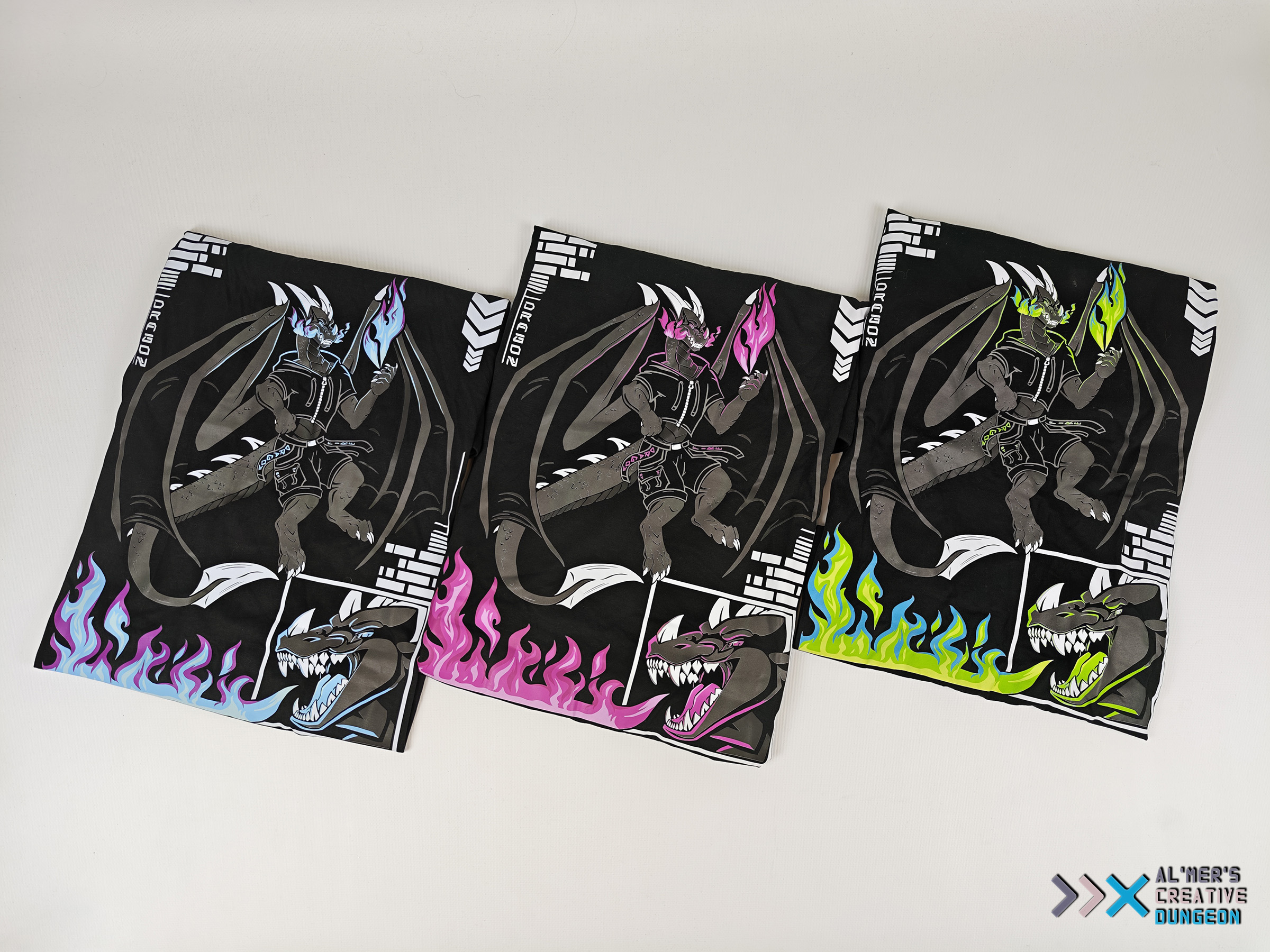 Unleash your inner beast with this bold and electrifying dragon design! This artwork features an anthropomorphic dragon clad in modern streetwear, with massive wings spread wide, conjuring a vibrant flame in one claw. Futuristic elements—such as tech-style symbols, angular borders, and a fierce close-up of the dragon’s roaring head—add depth and attitude to the overall composition. Available in three color variants. Material: Cotton Unisex cut Standard EU sizing